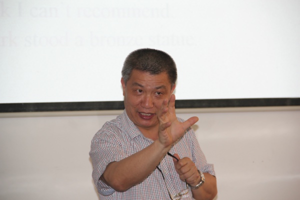 2013年5月31日华南理工大学永利集团304am登录院长钟书能教授受邀在我院做了题为“汉、英主语与主题对比研究——认知语言学之视角”的讲座。讲座由黄小萍院长主持,我院教师和研究生参加。