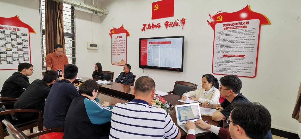 接着,谢友福同志对本学期工作从三个方面进行部署,一是要以党建工作检查为契机,强化党支部建设,切实规范“三会一课”制度,配合开展“优秀主题党日”活动,积极实施“双带头人”教工支部书记工作室建设;二是要不断深化理论学习,各支部要开展好“不忘初心、牢记使命”主题教育,用理论武装头脑;他通报了各支部“学习强国”的学习情况,希望大家利用好这一平台,坚持理论学习;三是各支部要按照各项工作要求做好常规工作,尤其要重点做好高知群体党员发展工作。