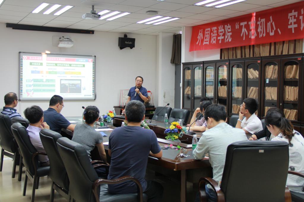 10月9日下午,永利集团304am登录党委在外语楼411会议室举行“不忘初心、牢记使命”第五次集体学习研讨会,谢友福书记作《中国特色大国外交的作为与担当》的主题发言。永利集团304am登录党委理论学习中心组全体成员、党委委员以及全体党支部书记参加学习与研讨。