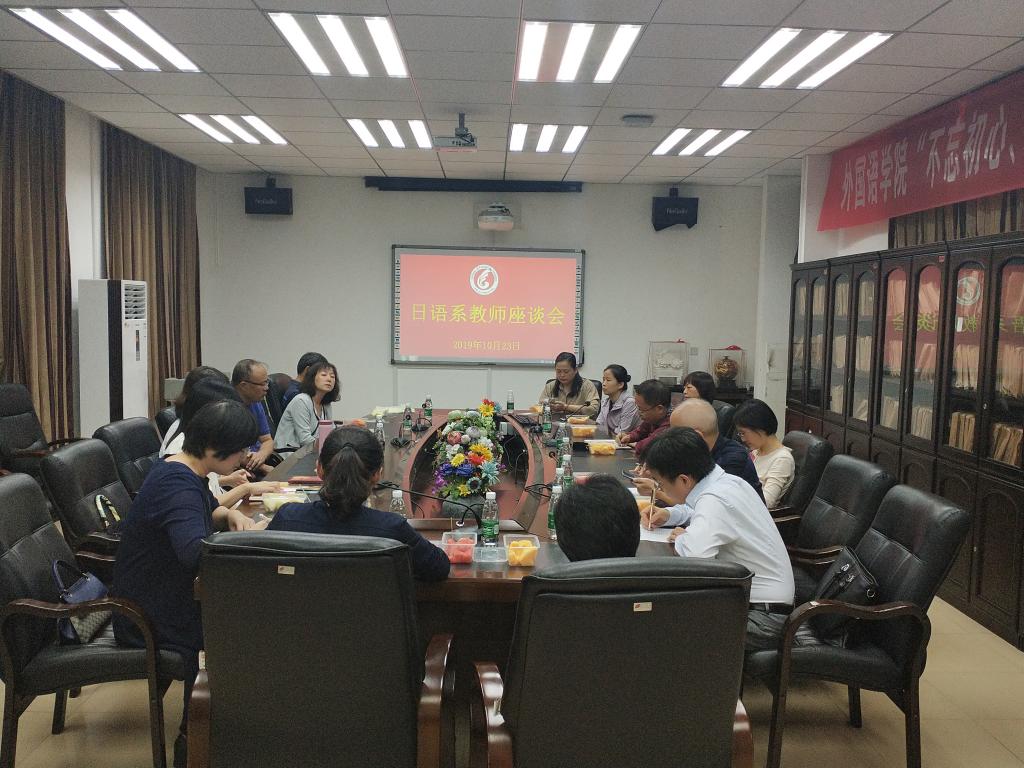 2019年10 月23日下午,永利集团304am登录于外语楼411会议室召开日语系教师座谈会。院党委书记谢友福主持会议,毛浩然院长、黄文溥副院长和日语系全体教师出席本次座谈会。