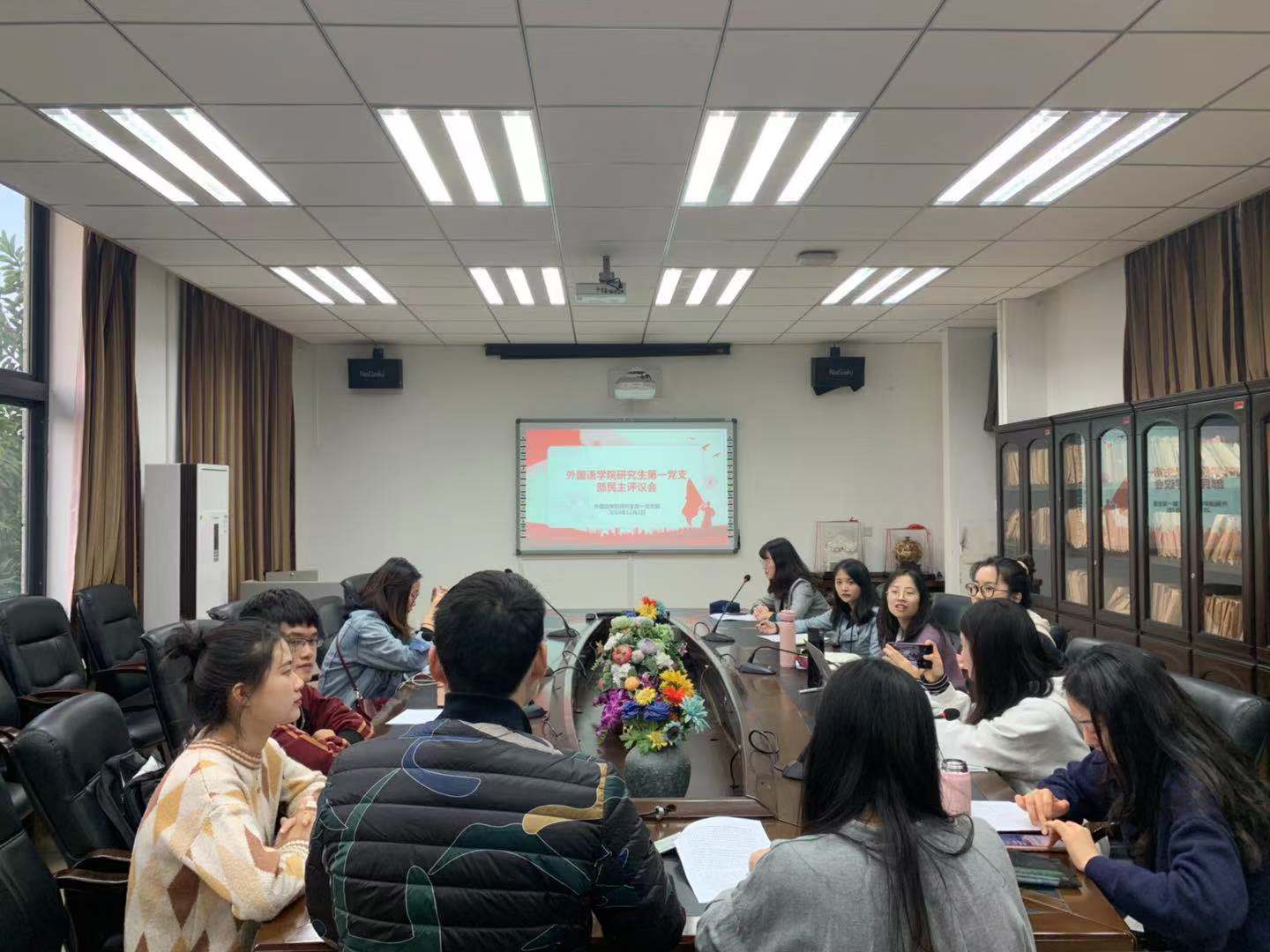 2019年12月2日下午,永利集团304am登录研究生第一党支部在外语楼411顺利召开专题组织生活会和民主评议。、支部全体党员参加了本次会议,会议由支部书记吴倩倩主持,学院党委员周思博老师与会指导并做点评。