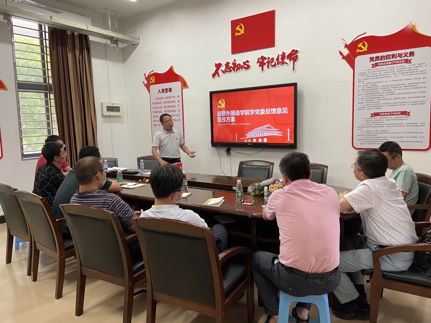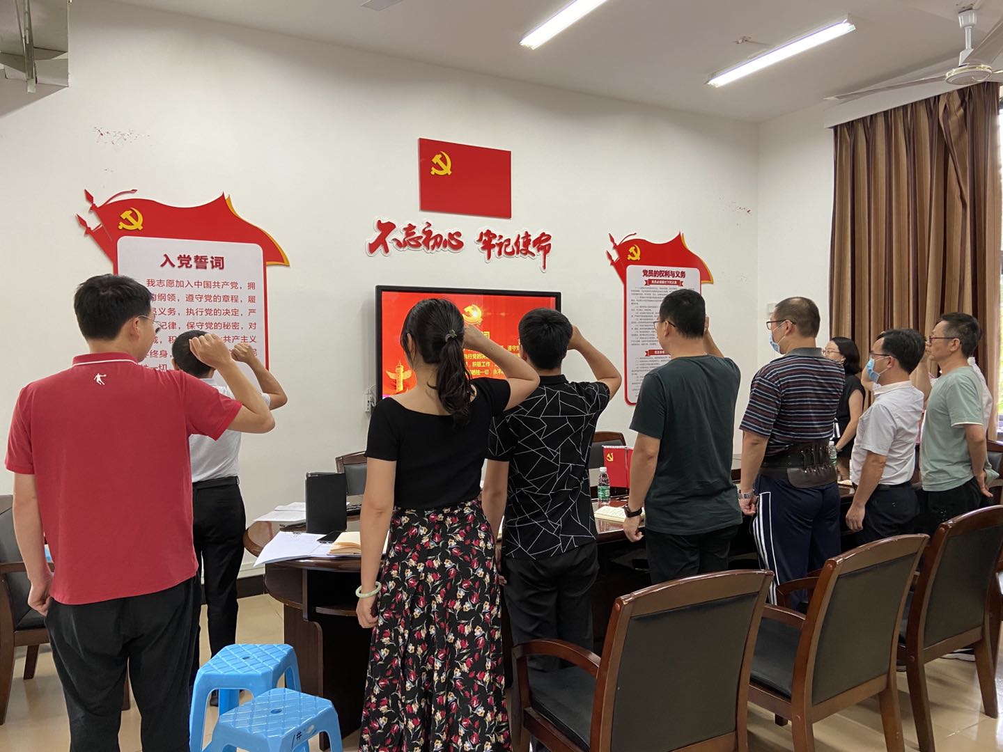 2020年7月1日下午,为庆祝中国共产党成立99周年,永利集团304am登录党委在学院306党建室召开期末党委工作会议,举行“重温入党誓词、执守初心使命”集体宣誓仪式。学院党委委员出席会议,各支部书记列席会议,在党委书记谢友福的带领下,举行集体宣誓仪式,一同重温了入党誓词。