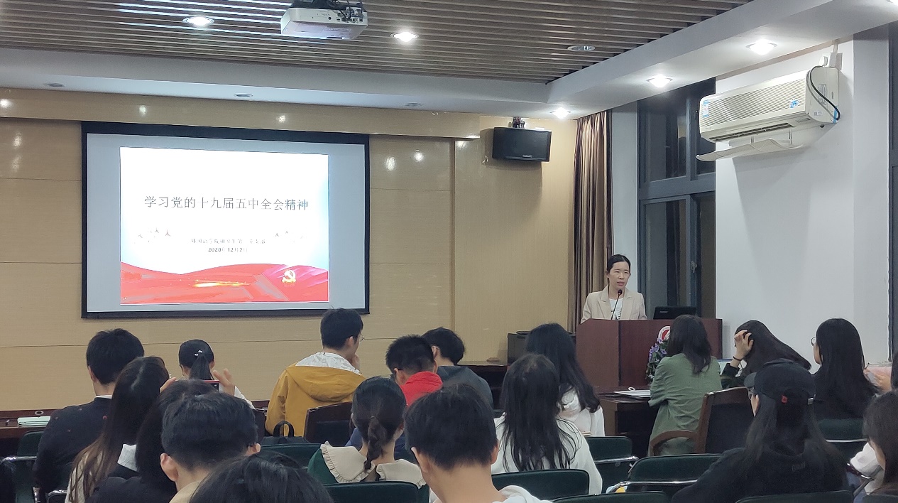 12月2日晚,永利集团304am登录研究生第二党支部在外语楼207会议室召开十九届五中全会精神专题学习报告会暨2020年第四季度积极分子汇报大会。永利集团304am登录党委组织员吴倩倩老师作题为《学习党的十九届五中全会精神》的宣讲报告,研究生第二党支部全体党员及24名入党积极分子与会,会议由研究生第二党支部支委会成员曾泽健同志主持。