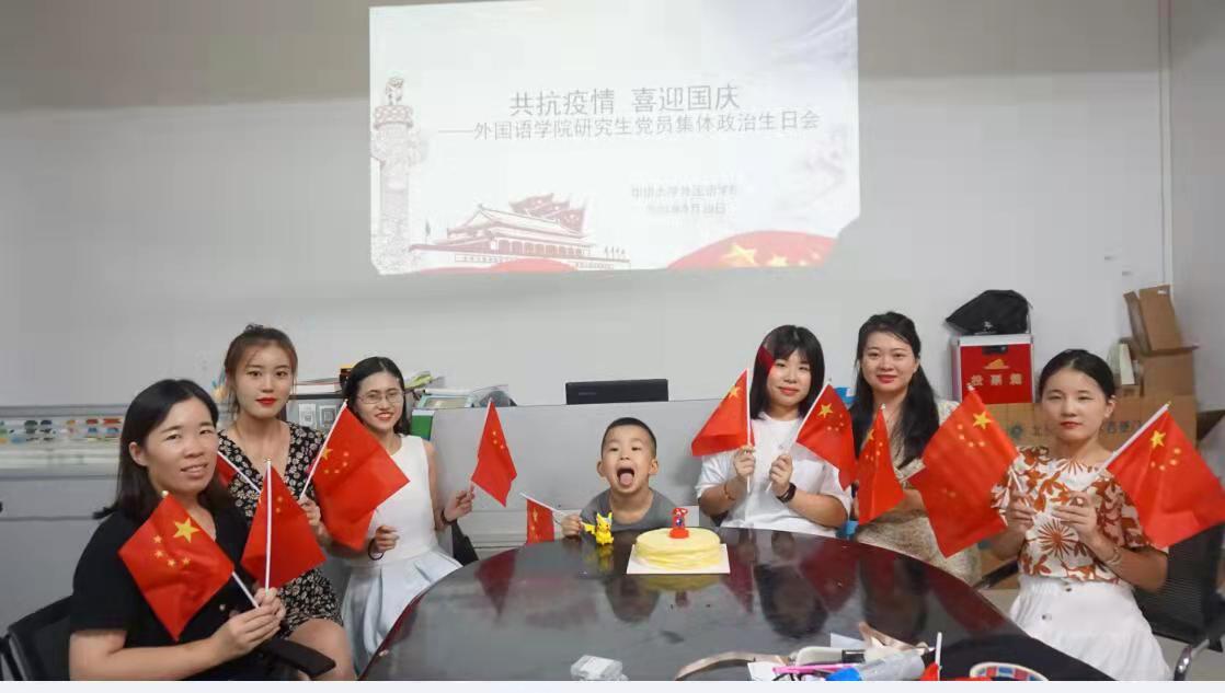 研究生第二党支部举办“共抗疫情 喜迎国庆”党员集体庆生会。主办人吴倩倩老师为10月“政治生日”的党员发放生日贺卡以及纪念书籍,藉由这场别出心裁的生日会塑造党内政治生活的“ 仪式感”,强化党员的“身份感”,激起党员的“荣誉感”,引导研究生第二党支部全体党员时刻不忘自己的“ 第一身份”,发挥先锋模范作用,注重党性修养,增强党员意识,用实际行动践行初心和使命。