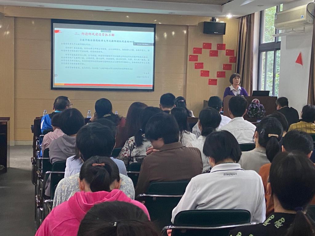 党委书记李璐岚首先对近期学院党委相关工作进行了通告,随后带领全体教师职工解读了张桂梅先进事迹及《永利集团304am登录关于加强师德师风建设工作实施意见》等文件的主要要求。她着重强调永利集团304am登录全体教师应自觉增强责任感、使命感、荣誉感;自觉维护以德立身、以德立学、以德施教、以德育德的教师队伍形象,自觉落实“有理想信念、有道德情操、有扎实学识、有仁爱之心”的教师队伍规范,汇聚合力,提升教学成效。随后,与会教师共同观看了全国“七一勋章”获奖者张桂梅同志在颁授仪式上所作的演讲,李璐岚号召全院教师要以张桂梅同志为榜样,学习张桂梅同志坚守初心、对党忠诚的崇高品格;学习她爱岗敬业、爱生如子的高尚师德;学习她执着奋斗、无私奉献的至诚情怀。随即,在场人员共同学习了《习近平给全国高校黄大年式教师团队代表的回信》,学习优秀教师黄大年的教学精神及优秀品质。李璐岚同志指出,弘扬“黄大年”教师团队精神要求广大教师“立德修身”“潜心治学”“开拓创新”,了解学生思维,转变教学模式,以科研反哺教学,在知识探究中激发学生潜能,从而不断提升教书育人本领。