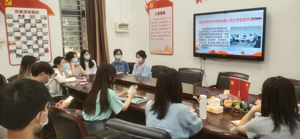 4月29日,永利集团304am登录本科生第二党支部召开党课学习会,学习习近平总书记在中国人民大学考察时的重要讲话精神,随后预备党员们汇报了近期的思想心得。支部书记吴倩倩老师带领党员、预备党员共43人参加本次会议,并作主要发言。因疫情原因,会议采取线上线下相结合的方式进行,确保学习会不落一人。