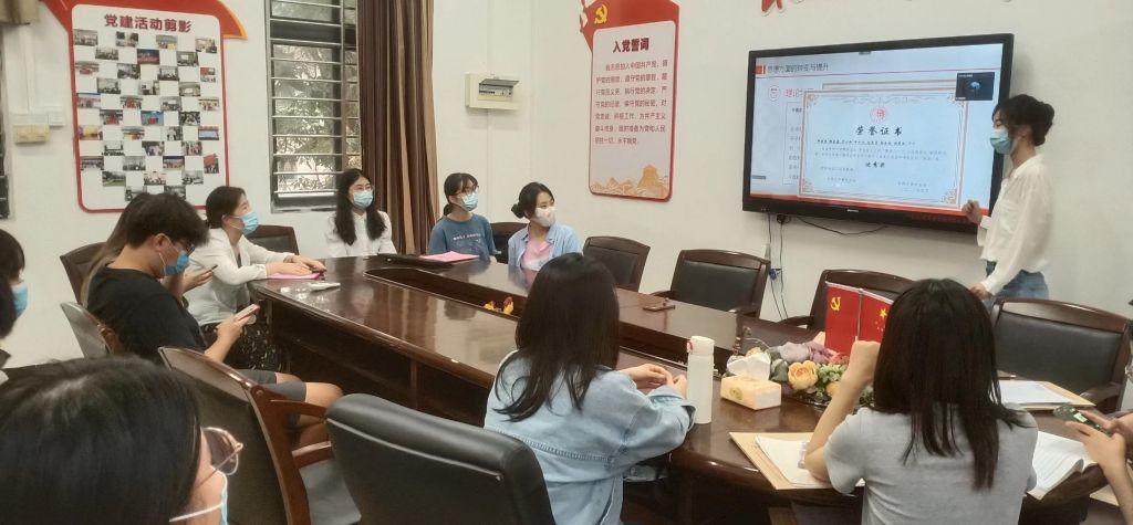 支部书记吴倩倩带领党员,从当代中国的历史性跨越,新时代中国青年的使命职责与努力方向进行了全面深入学习,回顾了中国特色社会主义发展历程,指出在中国特色社会主义新时代,青年要认真学习马克思主义理论,结合学习党史、新中国史、改革开放史、社会主义发展史,在学思践悟中坚定理想信念,在奋发有为中践行初心使命。一代青年有一代青年的历史使命,当代青年要树立与这个时代主题同心同向的理想信念,勇于担当这个时代赋予的历史责任,励志勤学、刻苦磨炼,在激情奋斗中绽放青春光芒、健康成长进步。简单来说,这个职责使命就是为实现中华民族伟大复兴中国梦而奋斗。最后她提出,作为青年党员要在做学问做人中做到四点:一要坚定理想信念,坚定“四个自信”;二要增强“四个意识”,做到“两个维护”;三要努力学习实践,练就过硬本领;四要勇于砥砺奋斗,投身强国伟业;在学习、工作、生活中做到不辜负中国共产党对青年地位和作用的高度重视,不辜负习近平总书记对当代中国青年寄予的殷切期望。