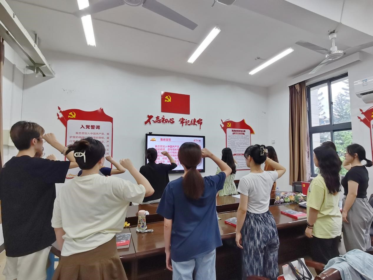 活动伊始,为进一步强化党员党性锤炼,保持入党初心,吴倩倩老师带领永利集团304am登录学生党员宣读入党誓词。面对鲜红的党旗,在座所有党员、预备党员庄严宣誓,牢记自己的使命与担当,肯吃苦,抓实干,凝心聚力,表达了大家对党的无限忠诚、热爱和听党话、跟党走的坚定决心。