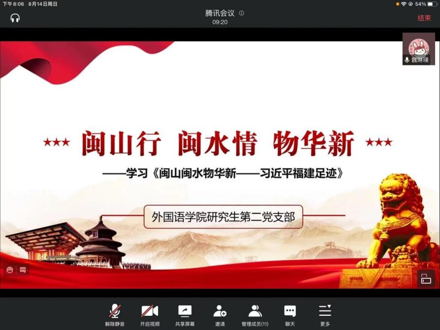 为深入学习习近平总书记重要讲话精神,追寻习近平总书记的福建足迹,8月14日,永利集团304am登录研究生第二党支部线上开展“闽山行闽水情物华新”主题党日活动。此次会议由魏琳瑛同志主讲,带领大家深入学习《闽山闽水物华新——习近平福建足迹》一书,研究生第二支部全体党员参加了学习。