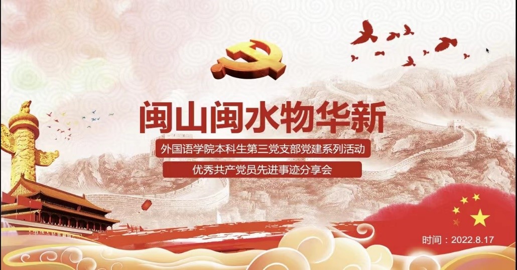 2022年8月17日,永利集团304am登录本科生第三党支部专题学习了“闽山闽水物华新”和优秀共产党员先进事迹分享会,会上参与分享的老师与同学们分别讲述了学习心得和优秀党员的事迹与精神:任晶晶同学分享了优秀党员张桂梅同志的事迹,党员应以张桂梅老师为榜样,作为新时代青年要牢记使命,珍惜当下的大好环境,努力奋斗。李祯同学分享了优秀党员郭明义同志的事迹,30多年来,郭明义无论在什么岗位上,都像雷锋那样忠于职守,爱岗敬业,做一颗永不生锈的螺丝钉,把工作当事业,把职责当使命。在郭明义身上,我们看到了一名普通职工的高尚情操和对企业的热爱,理解了主人翁精神的真谛。刘颖同学分享了优秀党员黄文秀同志的事迹,我们要学习黄文秀不忘初心、牢记使命,勇于担当、甘于奉献的精神,是我们大家学习的榜样,一批又一批的青年在这条新的长征路上接续奋斗,开辟星辰大海。刘冰冰同学分享了优秀党员廖俊波同志的先进事迹,逝世8个月后,廖俊波被评为第六届“全国敬业奉献道德模范”。他像一湾俊朗清波,滋润了闽北大地。他像一颗种子,种在广大干部群众心里。陈鑫艺同学分享了优秀党员董云阁同志的先进事迹,年仅24岁董云阁烈士用他年轻的一生,向我们讲述了他永存的英勇不屈的烈士精神。余新田同学分别分享了七一勋章获得者周永开、崔道植、刘贵今一生为党的事业无限忠诚、默默奉献的先锋事迹。