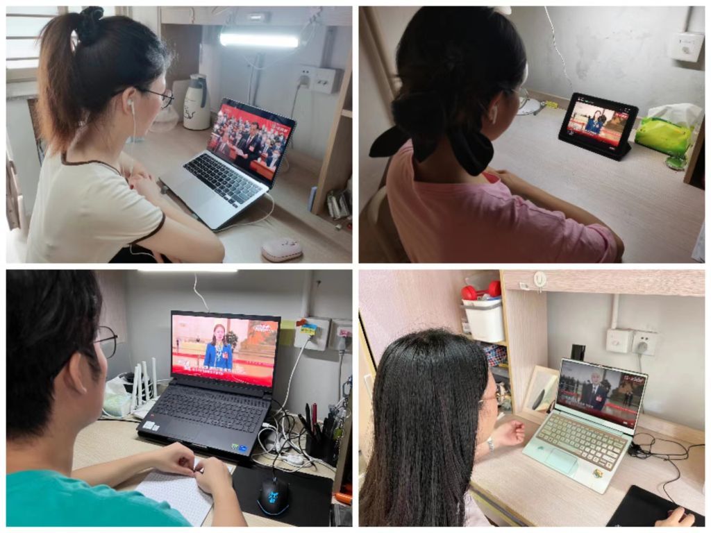 林泷同志认真谈到:听到习近平总书记的报告,只感觉中国真正变得越来越强大了。不管是教育领域,还是生态文明建设等,都朝着越来越好的方向前进。很多概念和名词,如“扫黑除恶”“一国两制”,其实都已经耳熟能详,但反复在提,说明它们正是中国的关键词,需要重视,需要每个人了然于胸。疫情防控,全国上下团结一致,将爱心和温暖传递,隔绝病毒但不隔离爱。现在的中国是强大的温暖的中国,我为国家而自豪!吴霜同志与宿舍里的党员同志们一起观看了开幕式,共同学习,她分享道:“习近平主席的讲话既是一次对以往经验教训的总结,又是一次对未来的明智布局与展望。我认识到,中国的未来必定是在阳光下灿烂的、辉煌的。两岸青年朝气蓬勃,正如早晨八、九点钟的太阳。两岸关系和平发展的未来寄托在青年身上。最后,孟祥露同志也有感而发,感叹道:“历史告诉我们在这风风雨雨建设中国路上,中国共产党一心为民的宗旨从来没有变过,社会发展取得了前所未有的成就,综合国力不断增加,人民生活水平不断提高。在中国共产党的领导下,我们国家持续繁荣发展,我们的个人生活富足、快乐。”