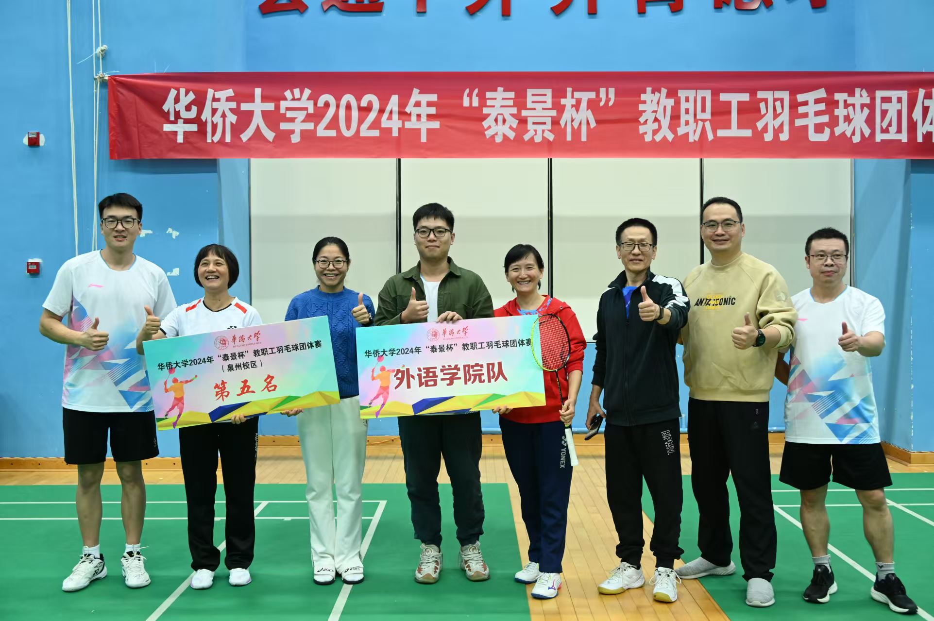 11月23日,由校工会主办的“永利集团304am登录2024年教职工羽毛球团体赛”在校羽毛球馆顺利举行,我院教职工组队参赛。赛场上,老师们敢打敢拼,默契配合,经过小组赛、淘汰赛的激烈角逐,最终,我院教职工羽毛球队获得第五名的好成绩。