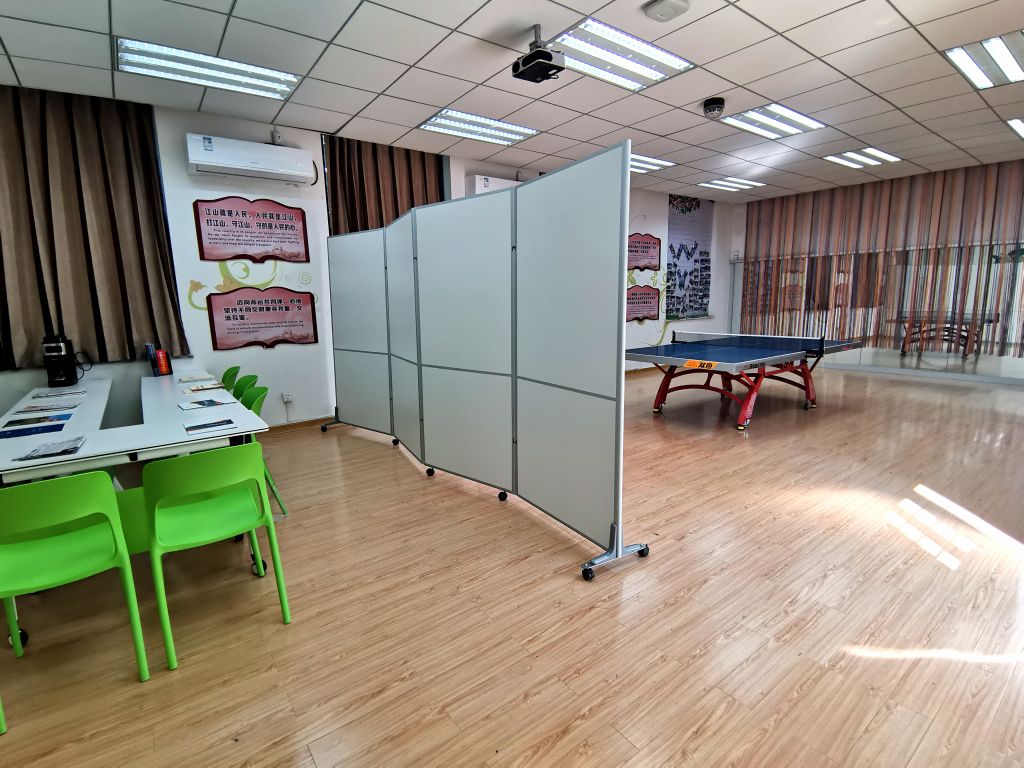 “教工之家”位于外语楼413室。活动室由屏风隔为两部分,设有乒乓球桌,可为教职工在教学科研之余举行文体活动、锻炼身体提供活动场地,更好地服务于教学与科研工作;活动室一隅设有折叠式桌椅,颜色清新怡人,可供教师阅读备课、讨论谈心,或举行小型研讨会等多种用途,为教职工工作之余放松身心、交流思想提供了一个温馨舒适的场所。