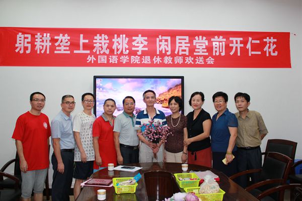 2015年9月24日下午,永利集团304am登录在外语楼306会议室为张炜煌老师举办了简朴而温馨的欢送会。校人事处副处长侯丽京、院长黄小萍、院党委书记谢友福、副院长潘锡清、英语系主任杜志卿、大英部主任陈海蛟、工会主席张宏文、教研室主任蔡和存、刘镇清以及部分教师出席了欢送会。