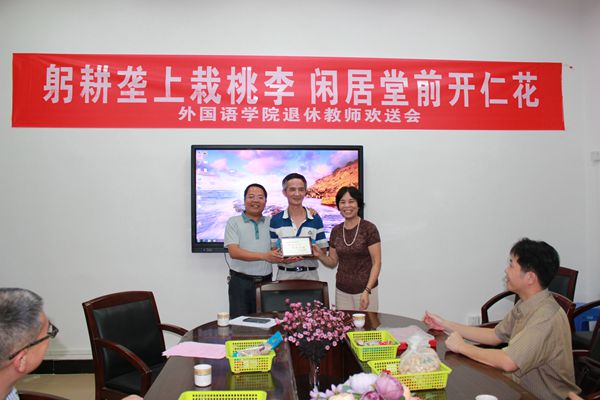 座谈过程中,与会教师们也回忆了自己与张炜煌老师相处的点点滴滴,对他无私奉献、甘为人梯的精神表达了由衷的敬意。欢送会上,学院领导为张炜煌老师颁发了镌刻着“滋兰九畹,树蕙百亩”的退休纪念匾并合影留念。