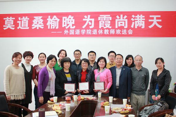 2014年3月26日下午,永利集团304am登录在外语楼小会议室为近期退休的王铁钧、魏丽华、黄曦、卢清琴4位老师举办了简朴而热烈的欢送会。学院党政联席会全体成员、各相关教研室主任出席了会议。