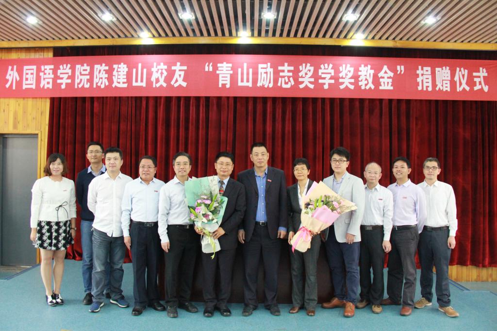2017年4月25日下午,陈建山校友“青山励志奖学金奖教金”捐赠仪式在庄为烜报告厅举行。陈建山校友与爱人陈清娥女士,学校吴季怀副校长,学院院长毛浩然教授、党委书记谢友福副教授、副院长黄文溥教授、副院长杜志卿教授、党委副书记肖景川老师,政治与公共管理学院党委书记林庆祥书记、学生处副处长陈英文老师、校友处副处长王强老师出席捐赠仪式,各系部主任、部分专业教师,学院阳光成长计划同学参加了仪式。