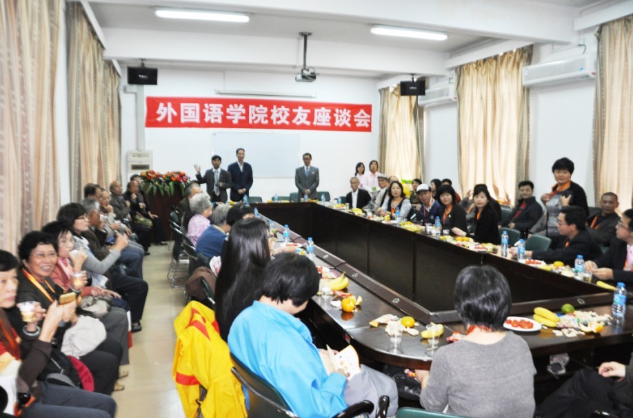 2010年11月6日,学院在外语楼举行多场校友座谈会。院领导陈道明、魏丽华、王铁钧、林庆祥、黄小萍,当年的班主任黄庆法、姚文清、潘锡清、辜丹心和已经退休的安荣生、林传沙、钟庆朱、许天佑、蔡大堂、王惠民、邱鼎祥、王怀晖、谢发扬、黄光林等老师,与返校校友济济一堂,畅叙华大情。众校友抚今追昔,一起怀念美丽的秋中湖,怀念外语楼的旋转楼梯,怀念众多老师的精彩授课,怀念每晚临睡前舍友恳谈会的海阔天空……离开母校多年后重聚华园,每个校友都在重拾当年的点点滴滴,感概学院的可喜变化。