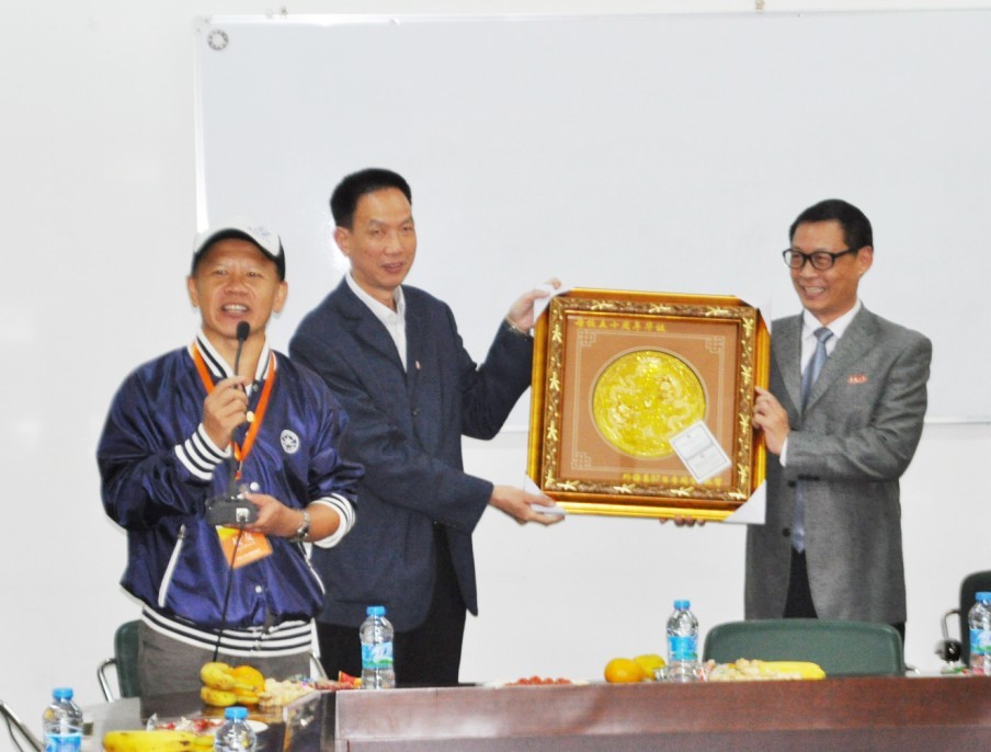 日语专业1987级校友代表则向学院赠送了 “双龙戏珠”厦门漆线雕以资纪念,感谢老师们的悉心培育,并代表同学们表示一定会向学院与母校贡献自己的一份力量。