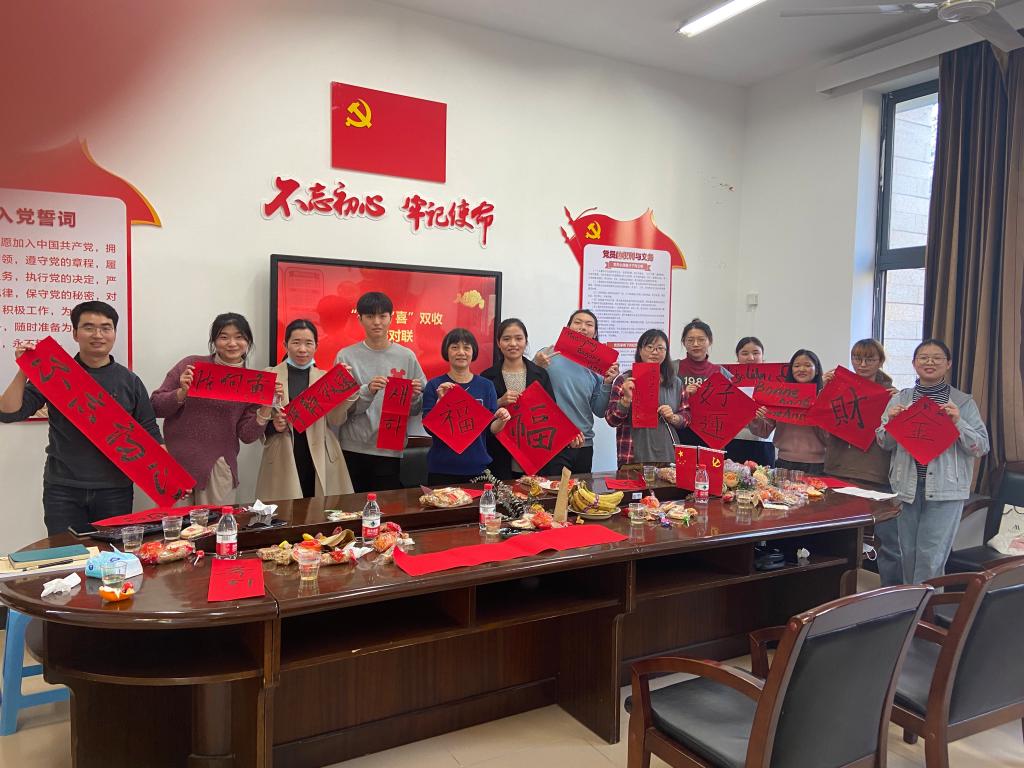 为关心和深入了解寒假留校学生的生活和学习情况,让每一个留校同学感受到学校学院的关怀与温暖,永利集团304am登录党委书记李璐岚,组织员兼研究生辅导员吴倩倩,辅导员黄洁萍、杜红居及学院寒假留校学生在外语楼306举行2021年寒假留校学生新年茶话会暨“福”“喜”双收写春联文化体验活动。