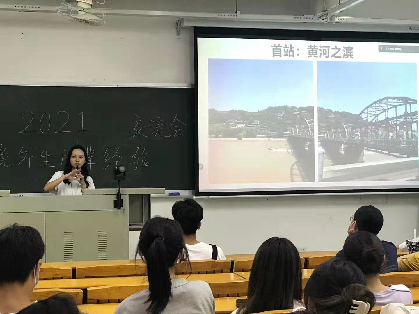 2019级英语专业,来自意大利的华侨学生章莞琦则分享了暑期跟随学校中国文化之旅-闽甘宁路线的经历,她介绍了《山海情》这部讲述中国中西部脱贫故事的电视剧,就是他们此行前往的目的地,他们去到黄河治沙示范点,看到了福建和宁夏对口扶贫工作的优秀成果,感受到了中国西部地区壮阔的景色,品尝了不同地域的特色美食,她鼓励新生一定要努力学习,把握游学的机会,亲自走一走祖国的大好河山,感受到中国近现代国情的变化。