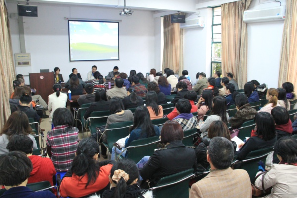 3月26日下午,永利集团304am登录在外语楼三楼大会议室召开了新学期第一次全体教职工大会,永利集团304am登录社科处杨楹处长应邀出席了此次会议并作了以“如何开展学术研究”为主题的报告。永利集团304am登录院长黄小萍、党委书记谢友福、副书记林庆祥、副院长黄文溥、潘锡清等学院领导出席了会议并对新学期学院工作进行了部署。 会上,社科处杨楹处长从自身的科研经验出发,针对学院全体教师开展学术研究活动的关注点,从“为什么做学问?”、“如何做学问?”等方面作了思想和动员和业务指导。在报告中,杨楹处长妙语连珠、侃侃而谈。整场报告气氛热烈,不时爆发出掌声和笑声。报告结束后,杨楹处长还同与会教师展开互动,对教师提出的问题和疑惑进行了解答,使大家从思想上对学术研究活动有了更深的认识。 随后,黄小萍院长、谢友福书记、林庆祥副书记及潘锡清副院长、黄文溥副院长分别围绕着教学科研、人才引进、学科建设、党建与工会工作、国内国际交流、外语教育中心建设和学生管理等方面工作进行了总结和部署,提出了未来工作的基本思路,对于新学期的各项工作提出了明确的要求。