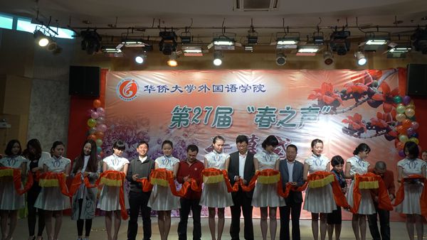 2015年4月7日下午3点,永利集团304am登录第27届“春之声”外语系列活动开幕式在明德堂举行。永利集团304am登录学生处处长陈国柱、永利集团304am登录领导黄小萍、谢友福、林庆祥、潘锡清,厦门浩盛工贸有限公司总经理饶兴荣(1993级中英文秘班校友)、厦门捷顺成石业有限公司董事赵亚男(日语2003级校友)及永利集团304am登录师生近300人出席了开幕式。 歌舞表演《春暖花开》拂来阵阵春意,拉开了整场盛会的序幕。接着,学生处处长陈国柱、永利集团304am登录党委副书记林庆祥分别致辞,回忆往昔赛事盛况,期冀“春之声”这一校园精品文化活动越办越好,成为学风建设的良好载体、学生社团成长的沃土、优秀学生成长历练的平台。紧接着力量与柔美结合的太鼓队、流行时尚的韩国舞蹈、英文日语歌串烧、日本舞蹈和茶道等内容丰富、形式多样的表演不仅充分展示了外院学子的才艺,更是通过表演展现了中外文化的精妙,既体现了外院的特色,更诠释了“汇通中外”校园文化精髓。随后,与会嘉宾一起为开幕式剪彩,黄小萍院长宣布第27届“春之声”大型外语系列活动正式开幕。 据悉,“春之声”大型外语系列活动创办于1989年,是华园历史最为悠久的品牌活动之一。本届活动包括英语辩论、英日语演讲、英日语影视配音、英日语情景剧表演、英日语模拟应聘等9项赛事,形式多样,主题鲜明,特色明显,共吸引全校各学院及泉州若干兄弟院校的500多名学子报名参加。 厦门浩盛工贸有限公司的饶兴荣校友还特意为本届春之声活动提供人民币1万元的赞助费用。