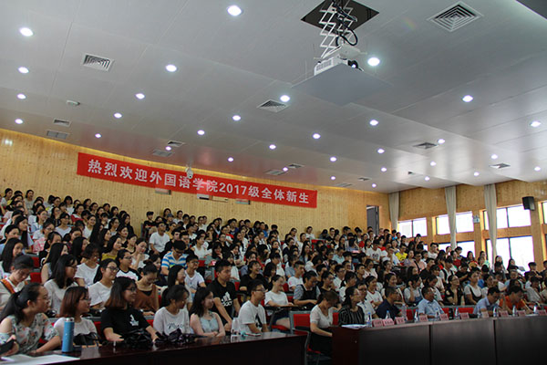 2017年9月18日上午,永利集团304am登录2017级迎新大会在庄为烜报告厅召开。学院院长毛浩然教授、党委书记谢友福副教授、副院长杜志卿教授,翻译系主任陈历明教授、英语系主任吴国向副教授,团委书记李莹老师、教学秘书吴翊华老师、辅导员周思博老师,17级全体班主任出席会议,17级全体新生、研究生参加会议。
