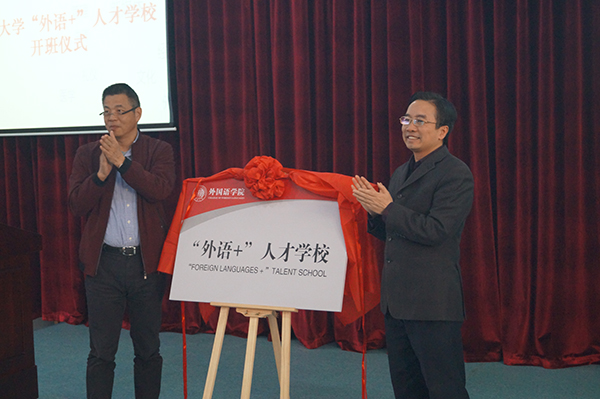 接着,吴季怀副校长和毛浩然院长共同为“外语+”人才学校举行揭牌仪式,并宣布“外语+”人才学校正式开班。