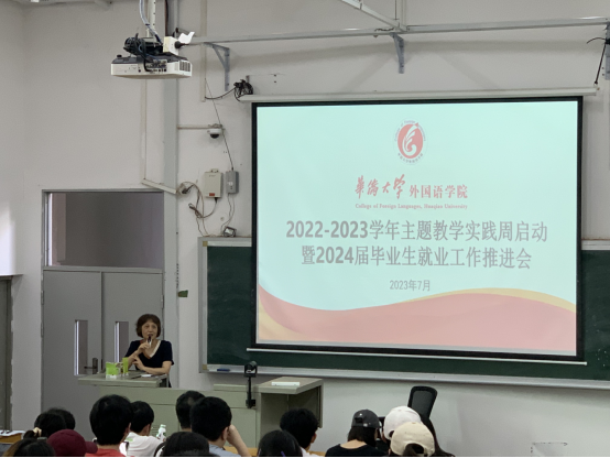 紧接着,李璐岚就2024届毕业生就业工作做了动员,向同学们介绍了2023届学生的就业去向和就业率,对就业数据进行分析,理清就业思路。她强调,学院各项工作取得长足发展,所以同学们应该对就业充满信心,表达出学院对24届学生就业有关事宜的关心和学生们未来发展的殷切期盼。
