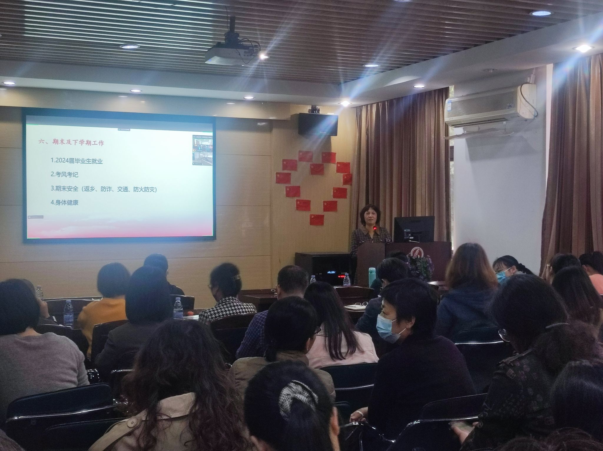 李璐岚主要对本学期学院党委工作、工会工作和学生工作进行总结,组织全院教职工专题学习师德师风建设、《永利集团304am登录章程》和党风廉政建设与网络文明,并对全院教职工进行期末安全主题教育。回顾了本学期学院各党支部活动开展、工会活动开展、成功举办三场教学学术会议、成功举办学院60周年院庆、协助做好本科审核评估等工作。还就期末、假期和下学期工作等进行部署,并请大家提高安全防范意识,确保人身和财产安全,共度快乐寒假。