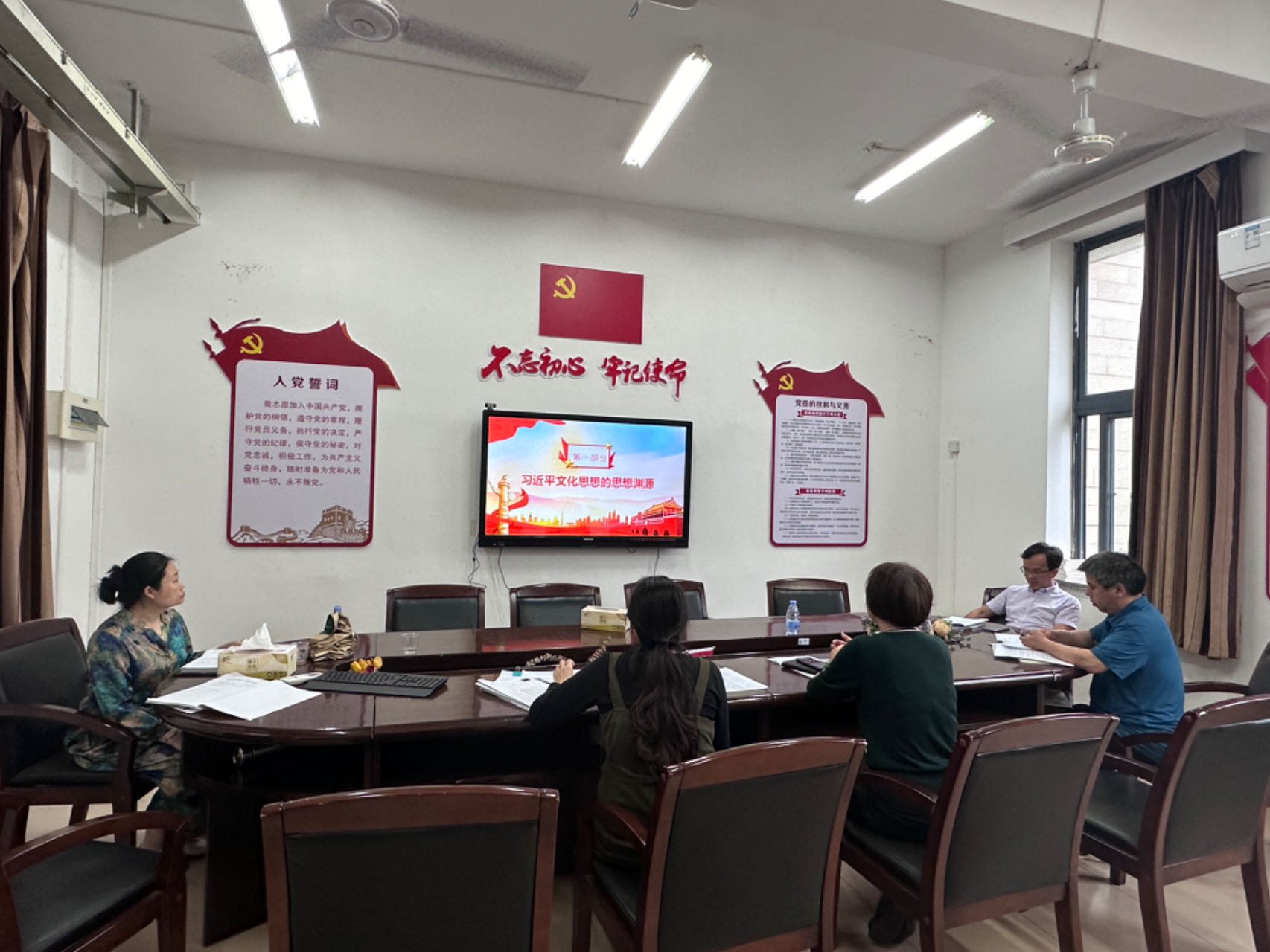 首先,张红针对学习主题做汇报,她认为,习近平文化思想内涵十分丰富、论述极为深刻,是新时代党领导文化建设实践经验的理论总结,丰富和发展了马克思主义文化理论,构成了习近平新时代中国特色社会主义思想的文化篇。全面和准确地探究其思想渊源、理论创新和独特贡献,对于我们深刻认识习近平文化思想,持续深入推动我国宣传思想文化工作建设具有重要意义,尤其是作为外语教育工作者,学习领会习近平文化思想,对于教育教学和外语类人才培养具有重要的作用。习近平文化思想作为“一个不断展开的、开放式的思想体系”,它在借鉴中华优秀传统文化的优秀成果的基础上吸收了历代中国共产党人的文化思想之智慧,散发出中华文化与中国精神之光芒。随后与会人员研讨。